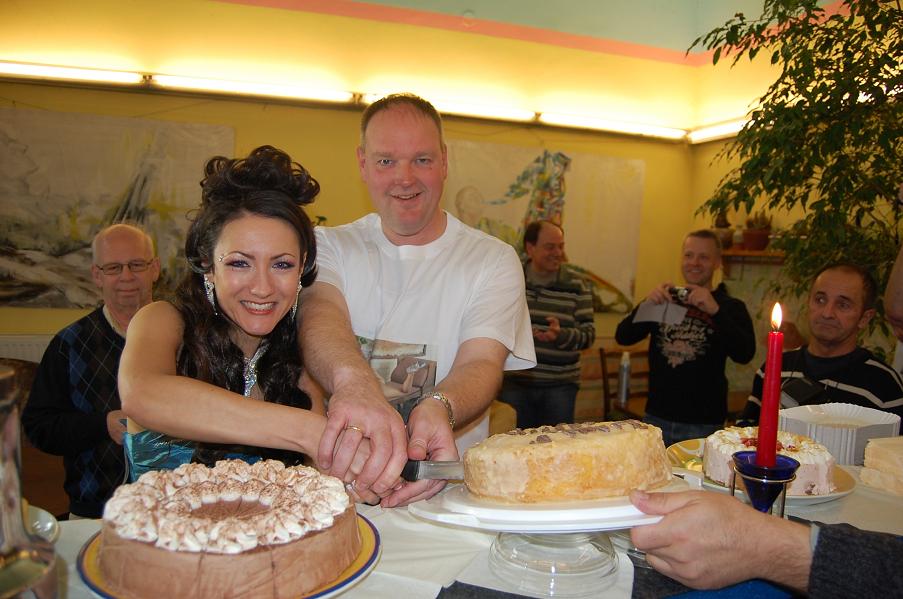Nach der Begrüßung mit Eventplanvorstellung und dem Ziehen der Tombolalose gings dann fett ans Futtern. Brigitte zauberte wieder einen „Jana B. Fanclubkuchen“, den ich fast allein anschneiden durfte (konnte). Außerdem kümmerte sie sich professionell um die Bewirtung und das Anrichten des Kuchen- und Abendessenmenüs.