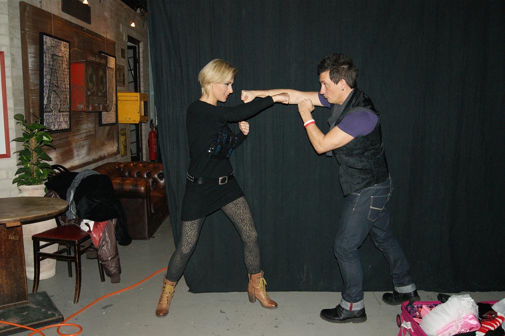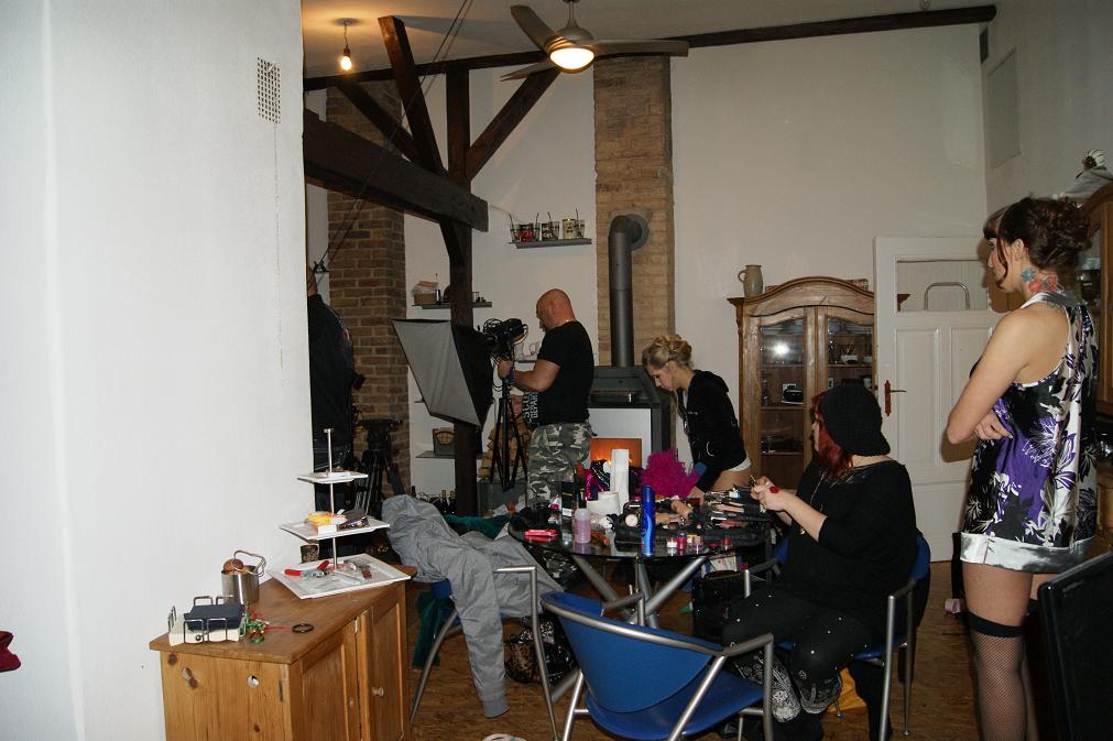 Gegen 00:00 Uhr lag ich in den Federn, und pünktlich 08:00 Uhr stand ich wieder am Set in Berlin Schönefeld. Eine 10 m lange Limo war dort der Aufhänger und das Thema der 5. Szene im Drehbuch. Als wir nach ca. 5 Stunden alles im Kasten hatten brachen wir die Zelte ab und fuhren weiter nach Berlin Weißensee zum nächsten Set, an welchem wir die weiteren Szenen am Montag und Dienstag für den „Jana B. Streifen“ drehten. SAT 1 begleitete uns den ganzen Montag lang, dazu muss ich sagen: Im Grunde irre, gleich 2 Filmteams zur selben Zeit zu bedienen, dass hat leider gut Chaos verursacht und unsere eigentliche Arbeit in den Hintergrund gedrückt. Zum Glück konnten wir am Mittwoch noch ein paar Schnittbilder nachdrehen, die uns dadurch an den anderen Tagen verloren gegangen sind.