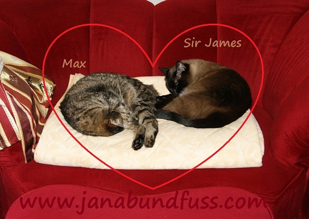 Fühlt Euch umarmt, Kussi-Bussi, Eure Jana and the cats: Max & Sir James.